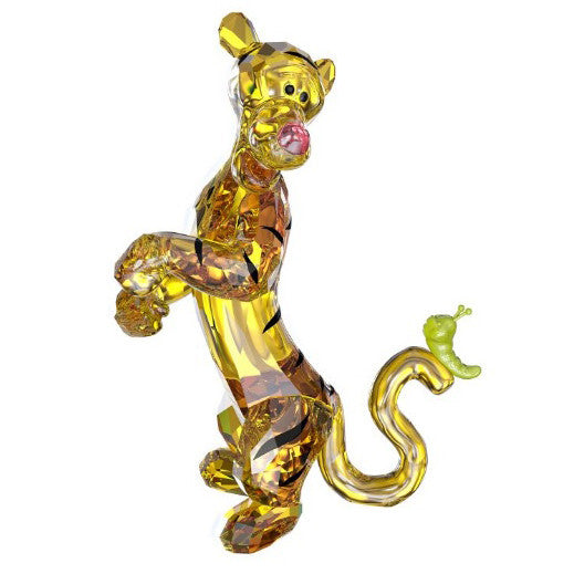 Playful and full of bounce, Tigger shines in Medium Topaz crystal with printed stripes. A cute caterpillar in mint green metal sits on the tip of his tail. This adorable piece combines perfectly with other Winnie the Pooh characters and makes a great gift for Disney fans. Decoration object. Not a toy. Not suitable for children under 15.