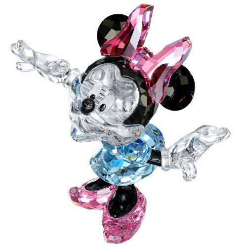 Eye-catching and colorful, Minnie strikes a playful and dynamic pose. She shines in Black Diamond crystal with a clear crystal face and gloves. Her eyes and nose gleam in Jet crystal and she wears a cute Aquamarine crystal dress and Rose crystal shoes. A must-have for Disney collectors! Decoration object. Not a toy. Not suitable for children under 15.